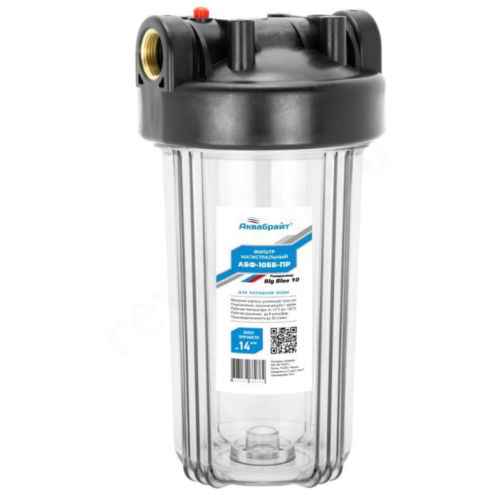 Магистральный фильтр АКВАБРАЙТ модель АБФ-10ББ-ПР изготовлен из пластика АС.