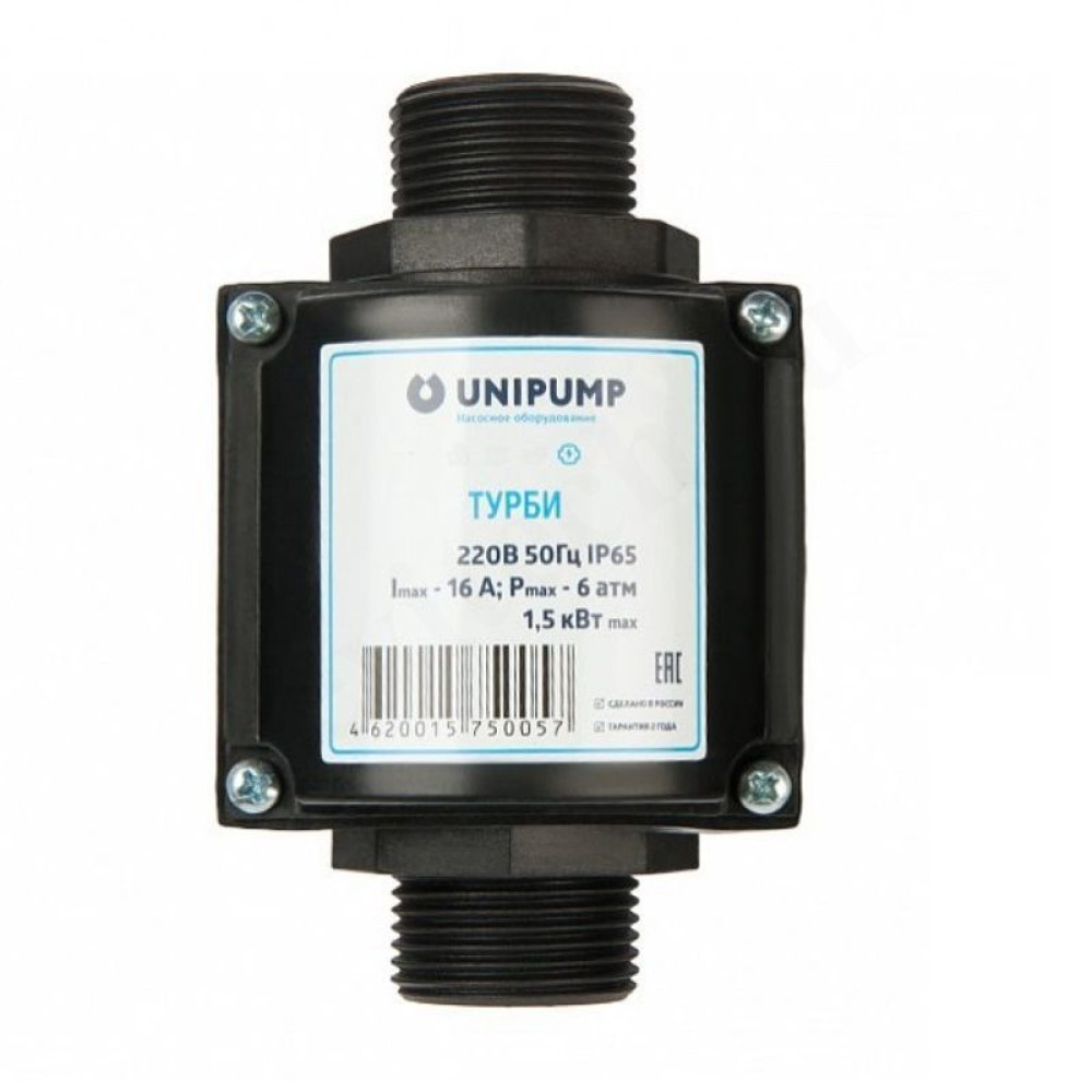 Устройство предназначено для автоматического управления включением и выключением однофазных поверхностных и погружных (в том числе и вибрационных) насосов, мощностью до 1,5 кВт, также оно может быть использовано, как устройство защиты от работы насоса в режиме «сухого хода». Функциональные возможности: 1. Автоматически включает насос при потоке воды. 2. С пятнадцатисекундной задержкой выключает насос при прекращении потока воды. 3. Защищает насос от работы в режиме «сухого хода». 4. Обеспечивает устойчивое включение и выключение насоса при понижении напряжения электросети вплоть до 170 В.* *Примечание: при понижении сетевого напряжения, мощность насоса снижается пропорционально квадрату напряжения, что приведет к снижению напора и производительности. Параметры электрической сети: 220В, 50Гц Мощность насоса: до 1,5 кВт Ток нагрузки: до 10 А Предельно допустимое давление в системе: 0,6 МПа (6 бар) Максимально допустимый поток воды 100 л/мин Допустимый диапазон температур воды: от +5 до +35 °С Допустимый диапазон температуры внешней среды: от +1 до +40 °С Требования к перекачиваемой жидкости: Чистая вода без абразивных частиц и волокнистых включений. Максимальный размер примесей 1 мм. Присоединительные размеры: 1" (наружная резьба) Класс защиты IP65