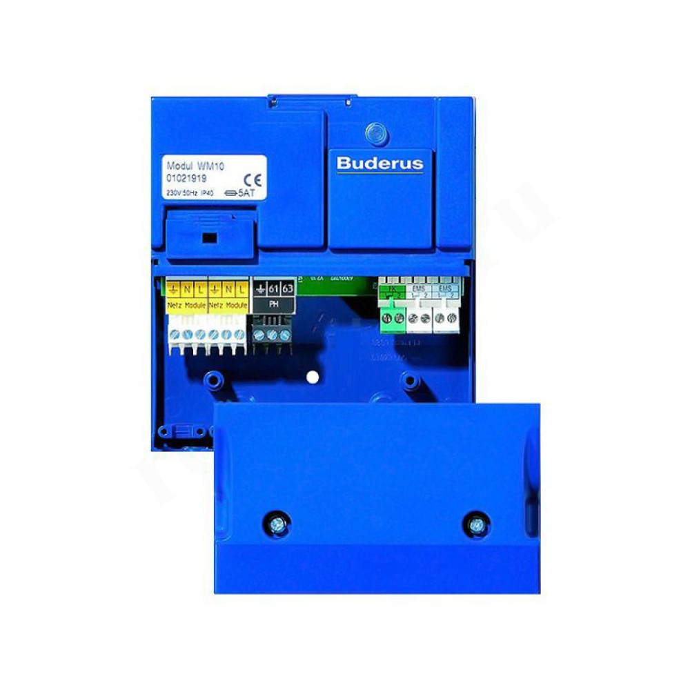 Модуль BUDERUS WM10 - модуль гидравлической стрелки для установок с гидравлической увязкой и для управления одним отопительным контуром без смесителя при произвольном монтаже. Модуль устанавливается в котел или на стену. Соединительные штекеры имеют цветовую и цифровую кодировку. Внутренняя коммуникация осуществляется через шину ЕМS.