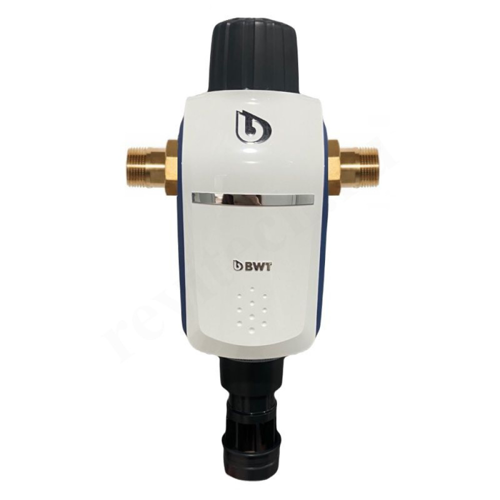 Для удобства пользования фильтр обладает возможностью обратной промывки. При загрязнении фильтрующего элемента снижается его пропускная способность, в результате повышается давление в системе. Как только оно достигает определенной отметки, фильтр необходимо промыть: для этого необходимо повернуть рукоятку. В нижней части фильтра расположен сливной штуцер, через него удаляются загрязнения.