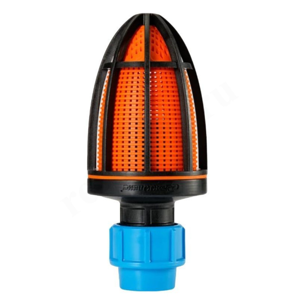 Сетчатый водозаборный фильтр со встроенным обратным клапаном устанавливается на всасывающую магистраль. Пластиковая заборная сетка фильтра улавливает и не пускает в систему крупные абразивные частицы разных видов примесей.