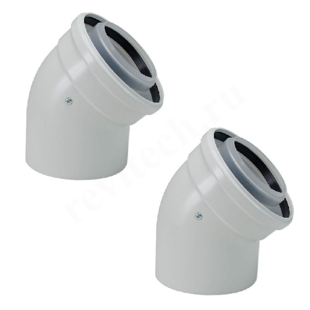 Угловые коаксиальные колена 45° DN80/125, для конденсационных котлов.