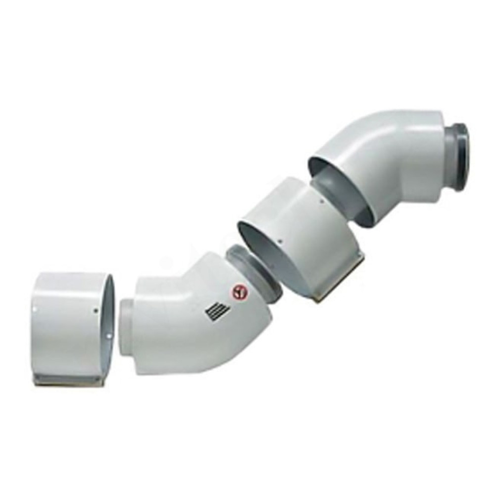 Отвод Vaillant — телескопический участок для устранения возможных несоосностей при сборке систем дымоходов 60/100, ошибке при пробивке отверстий в перекрытиях, обхода неустранимых препятствий при прокладке или иные причины, требующие смещения оси прокладываемого дымохода.
