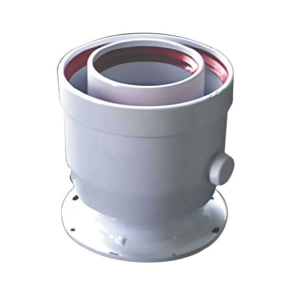 Начальный вертикальный присоединительный элемент с отверстием для анализа сгорания с переходом Ø60/100 мм на Ø80/125 мм, внутренняя труба – PPS