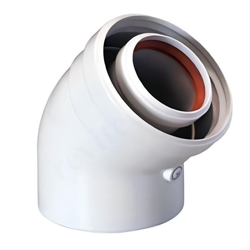 Коаксиальный отвод полипропиленовый 45°, диам. 80/125 мм. Для конденсационных котлов бытовой серии для увеличенния максимальной длины до 25 м для конденсационных колов коммерческой серии LUNA Duo-tec MP 35-70 кВт, Evodens AMC Pro 45.