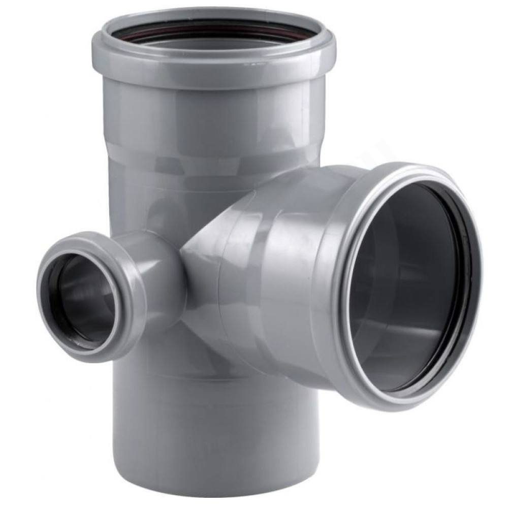 Крестовина двухплоскостная канализационная Ростурпласт диаметром 110 мм для монтажа систем внутренней канализации. Имеет выход слева под трубу 50 мм.