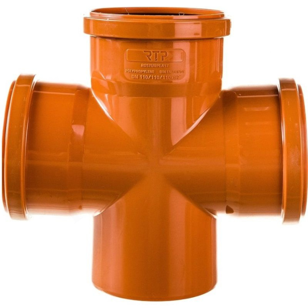 Крестовина 87° 110-110-110-110, RTP, раструб-труба, оранжевый