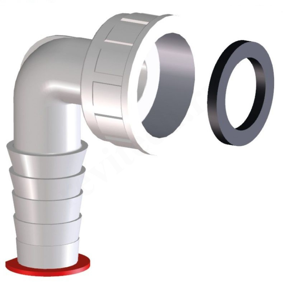 Рекомендуется для соединения сливного шланга Ø 3/4” от стиральной или посудомоечной машины с накидной гайкой 1”, уплотнение “труба в трубе”.