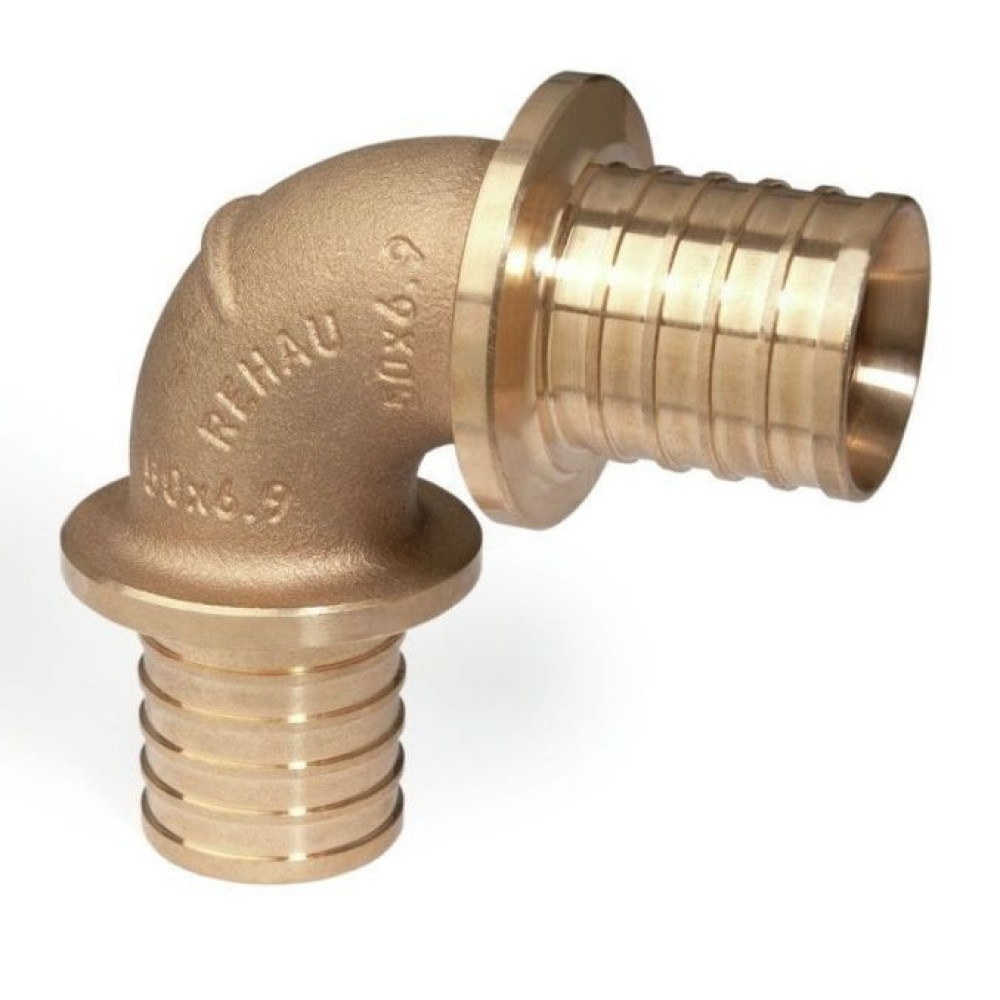 Угольник 90° 50-50, Rehau RAUTITAN, RX, надв.гильза-надв.гильза, бронза