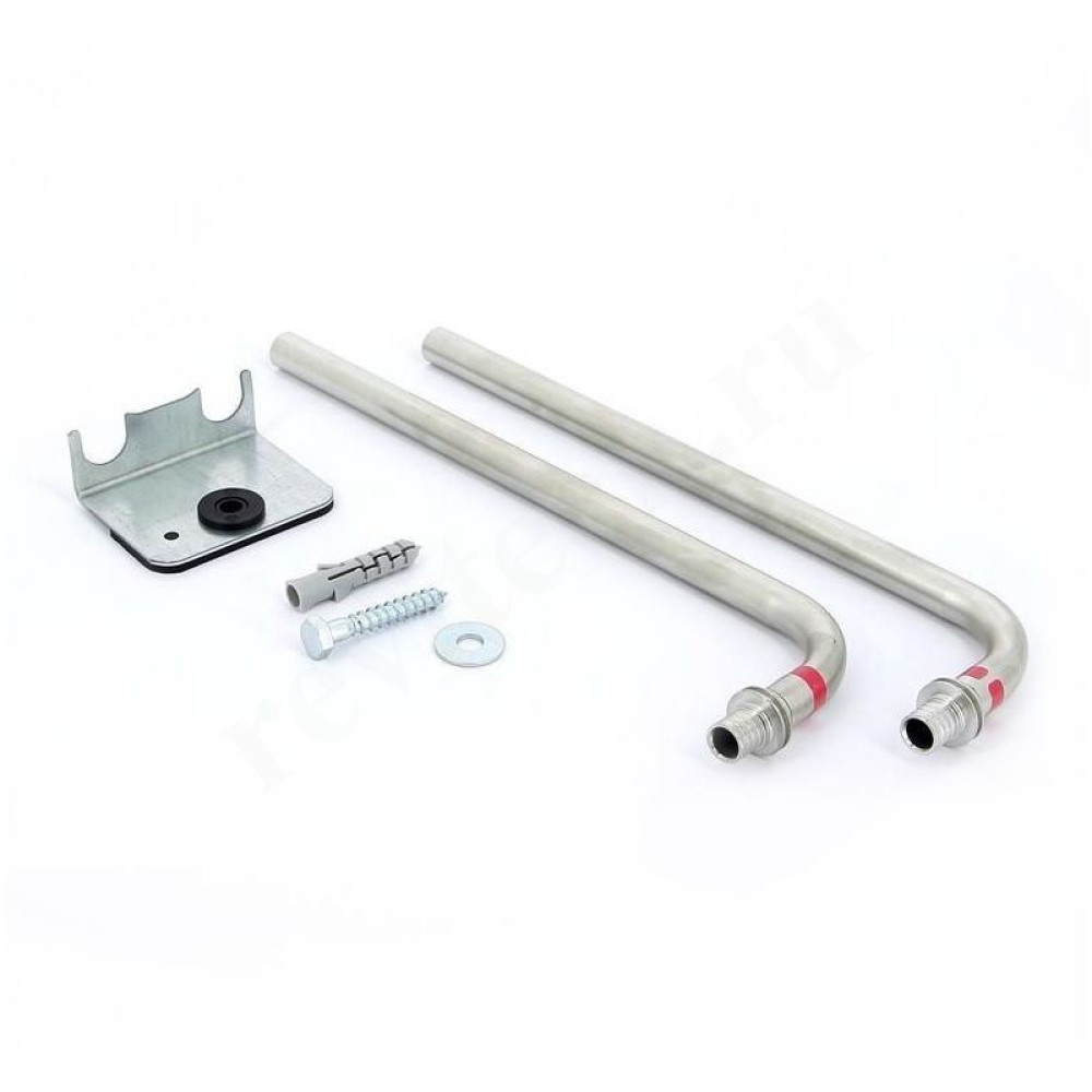 В комплект входят: 2 Г-образные трубки, 1 фиксирующий уголок для их крепления к полу, 1 дюбель (10 мм), 1 винт (размер ключа – 13 мм) с шайбой.