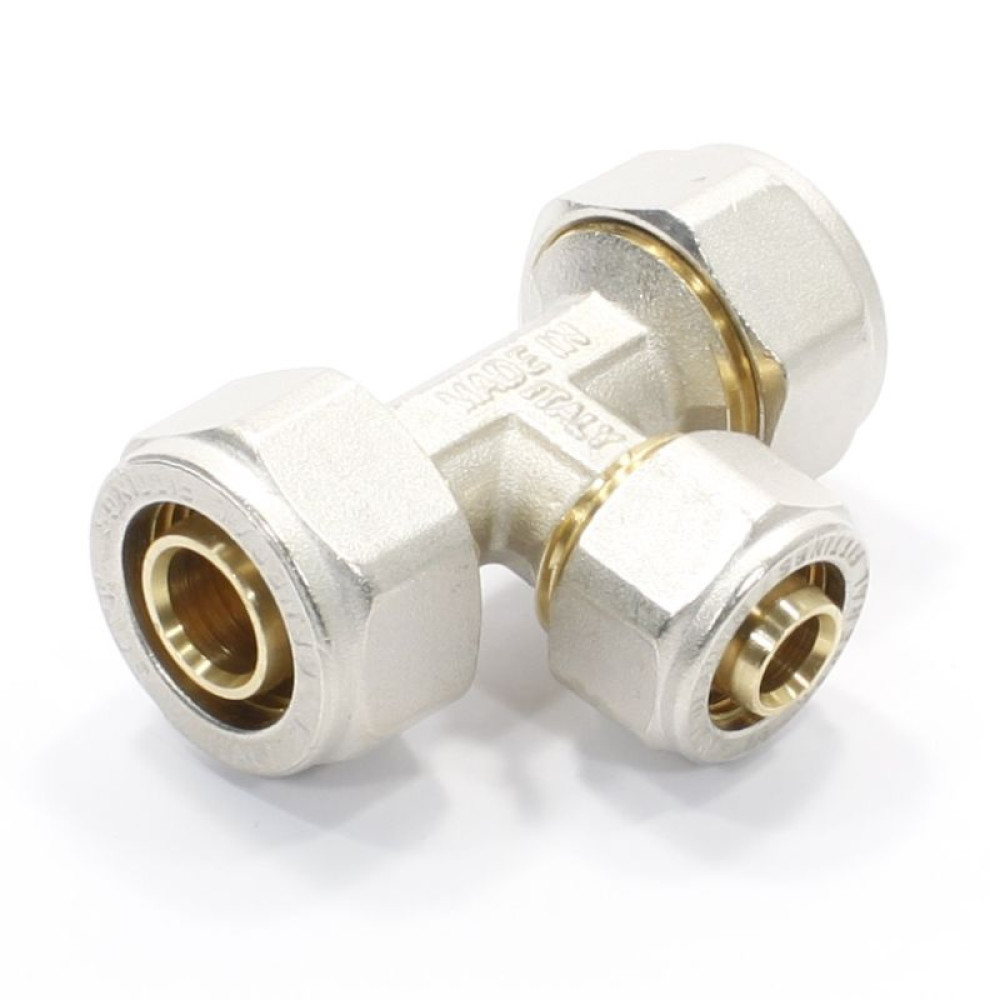 Тройник 20-16-20, General Fittings 5300 13, обжим-обжим, латунь (никель)