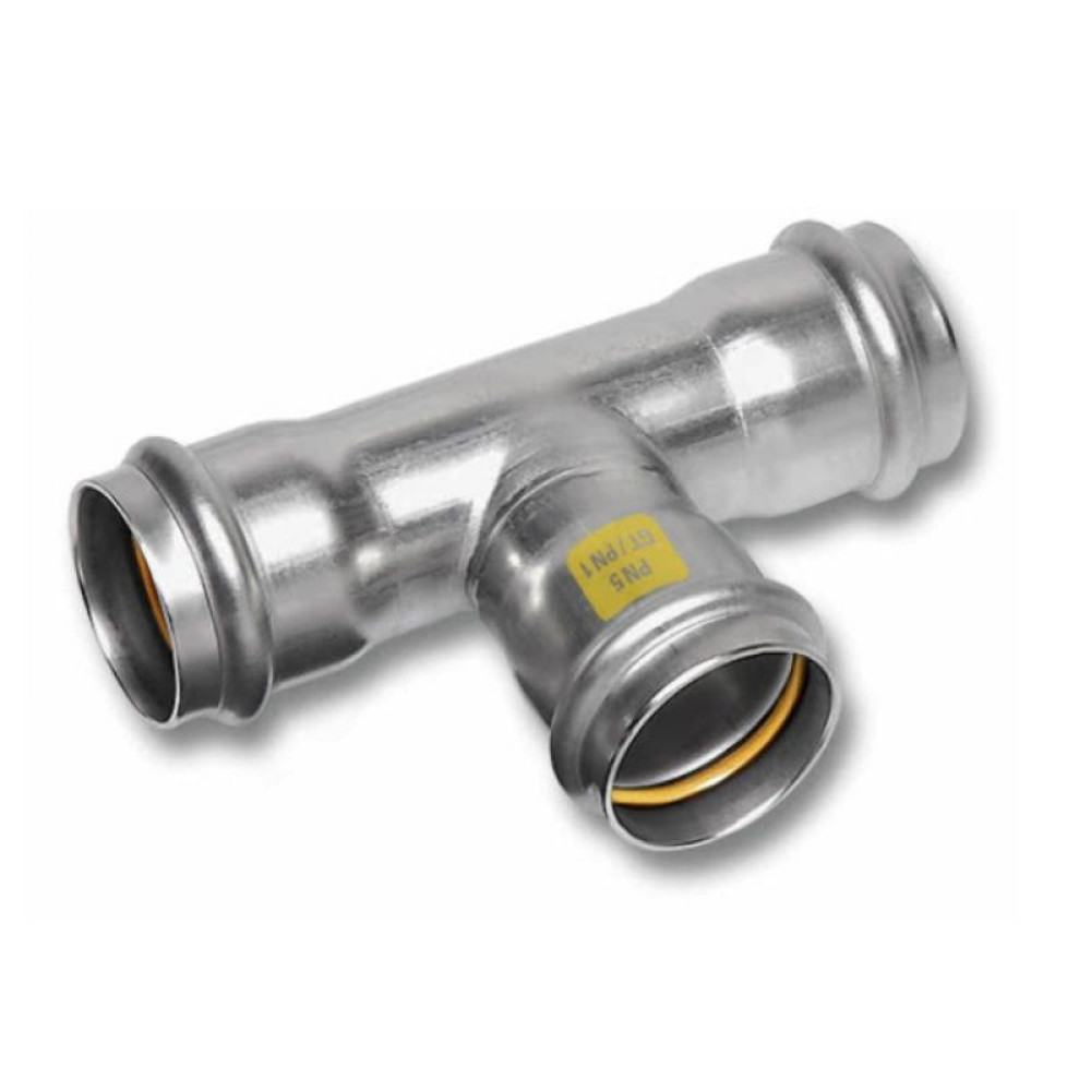 Тройник 22-22-22, Sanha NiroSan Gas, 17130, пресс-пресс, сталь нержавеющая