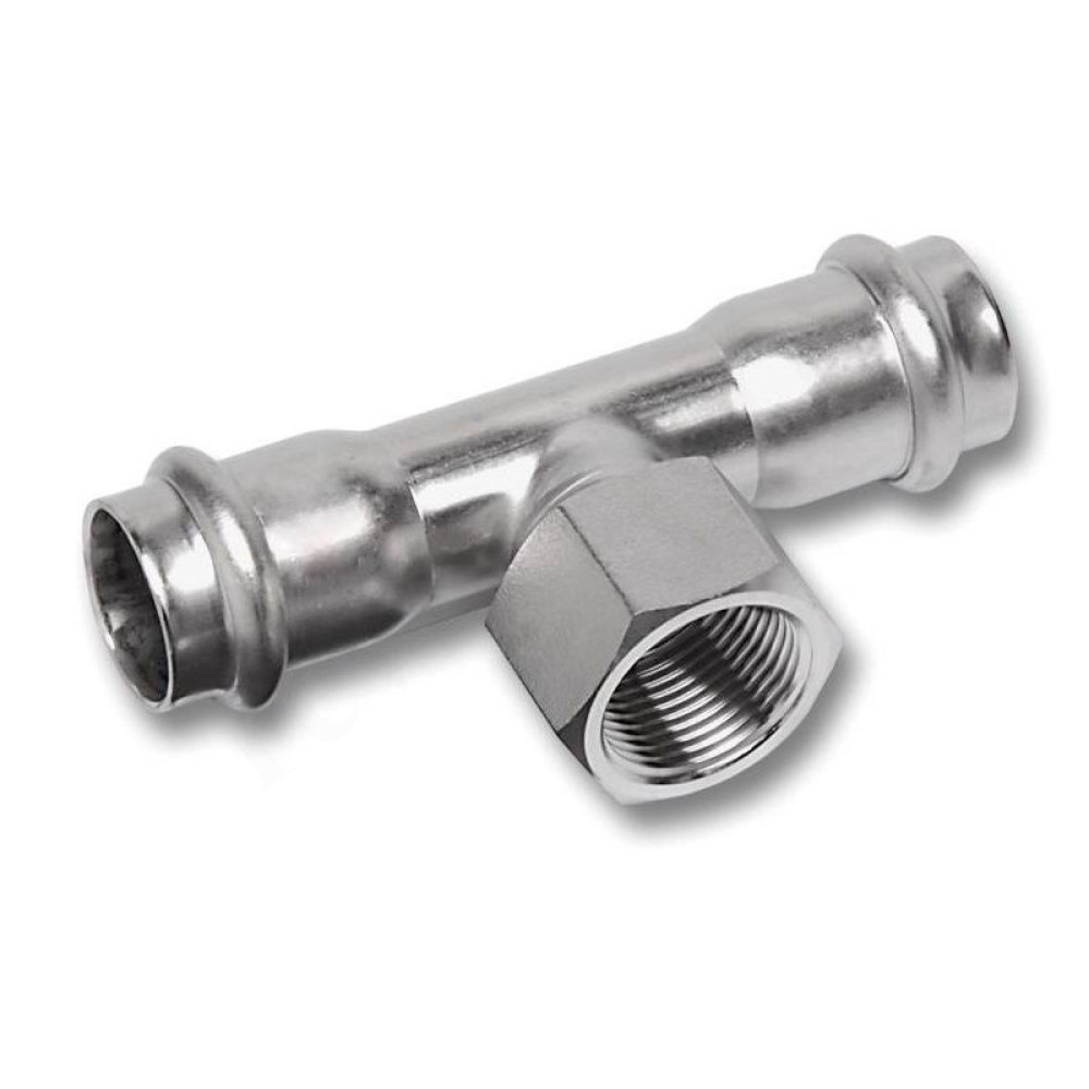 Тройник 35-3/4"-35, Sanha NiroSan, 9130G, пресс-резьба, вн., сталь нержавеющая