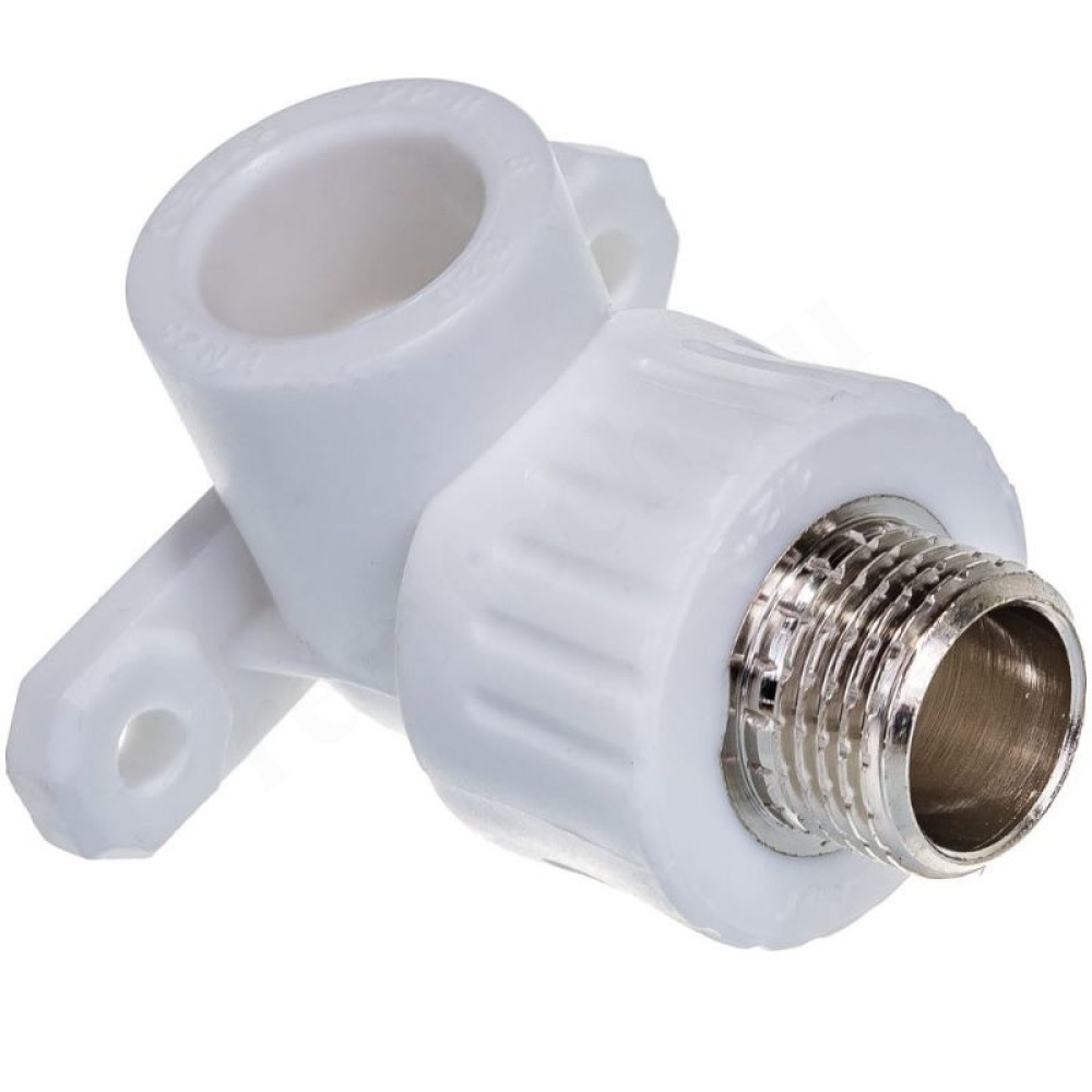 Угольник Ростурпласт комбинированный с креплением (водорозетка) с наружной резьбой применяется при монтаже систем отопления и водоснабжения и служит для присоединения полипропиленовой трубы к компоненту системы с внутренней резьбой под углом 90 градусов друг к другу. Угольник изготовлен в соответствии с ГОСТ 32415-2013 и может выдерживать давление до 25 бар. Закладные детали выполнены из высококачественной латуни типа ЛС-59-2 с пониженным содержанием свинца.
