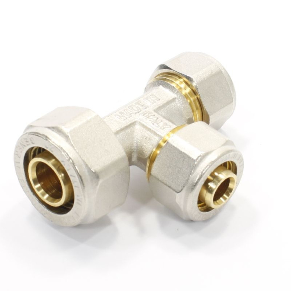Тройник 20-16-16, General Fittings 5300 13, обжим-обжим, латунь (никель)