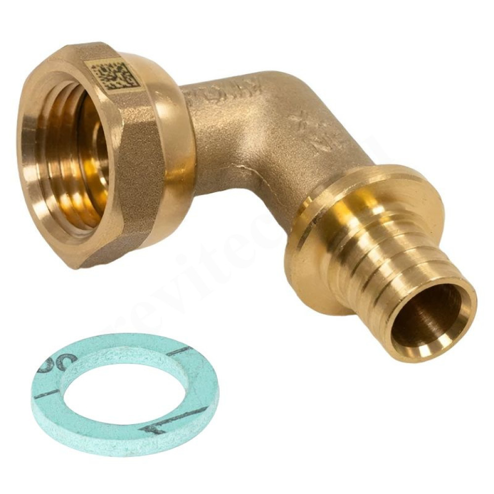 Угольник 90 16-1/2", Rehau RAUTITAN MX, надв.гильза-резьба, вн., латунь, с накид.гайкой