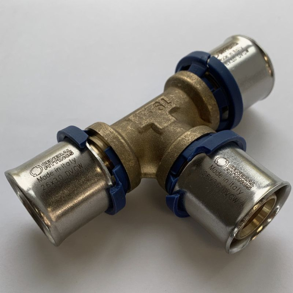 Тройник 26-26-26, General Fittings 5S00 10, пресс-пресс, латунь, золотой
