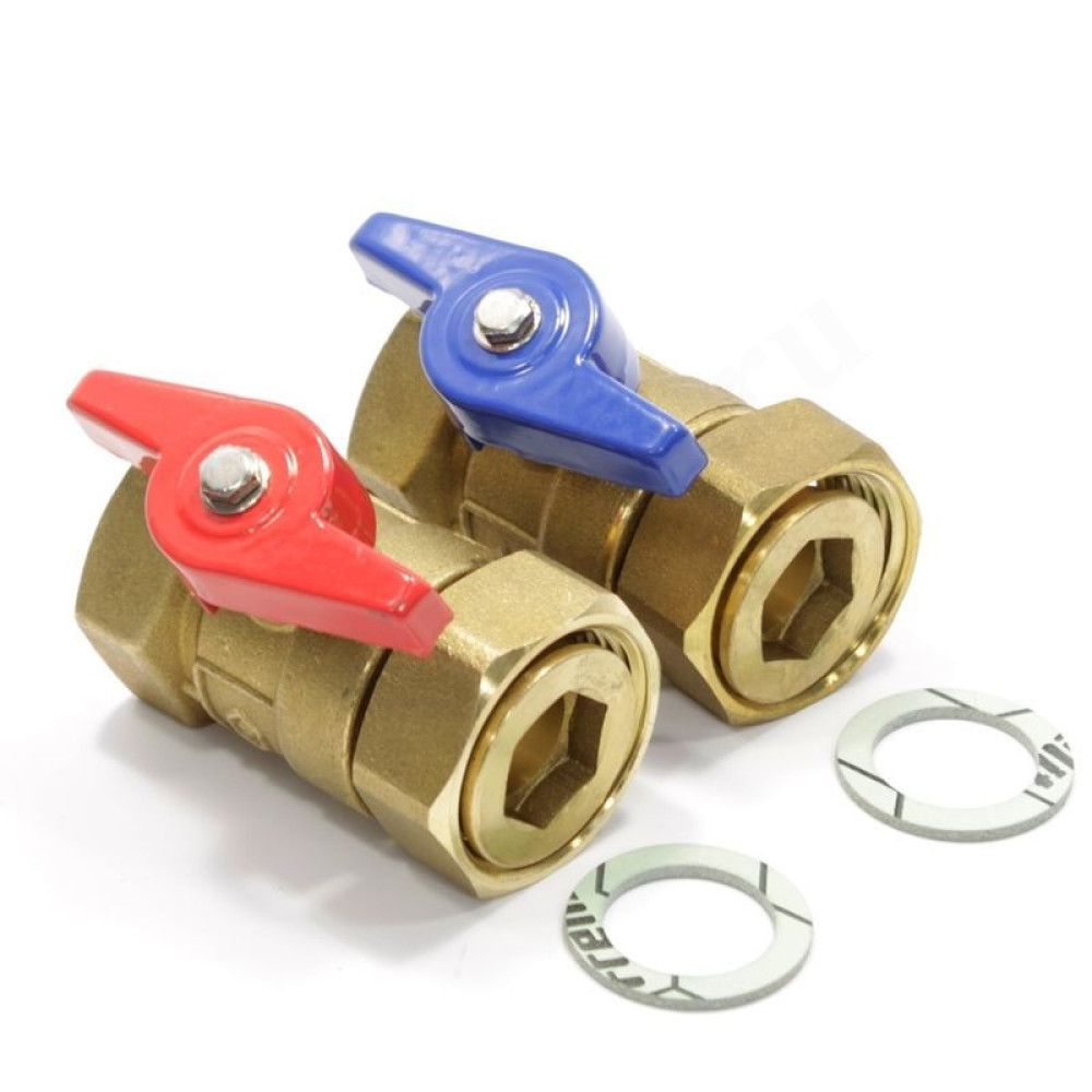 Кран шаровый с накидной гайкой 1" и уплотнением, 1"Fx1"F, набор 2 штуки