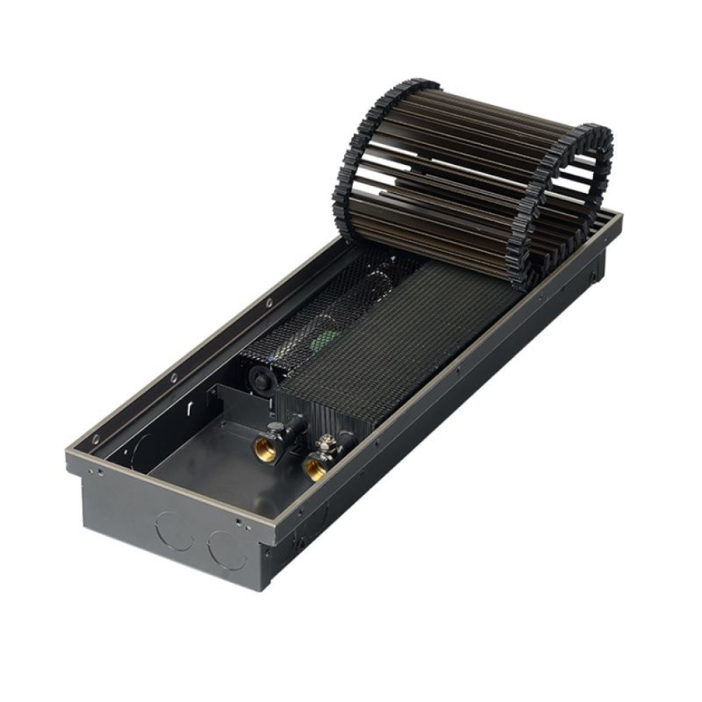 Внутрипольный конвектор "Гольфстрим-24В" - отопительный прибор для систем водяного отопления, с принудительным движением воздуха через нагревательный элемент с помощью тангенциальных ветиляторов. Конвектор укомплектован клапаном воздухоудаления.
