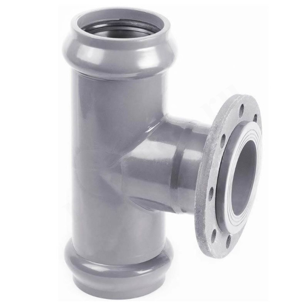Тройник 160-150-160, Хемкор SDR 26, раструб-фланец, серый, с мет. фланцем