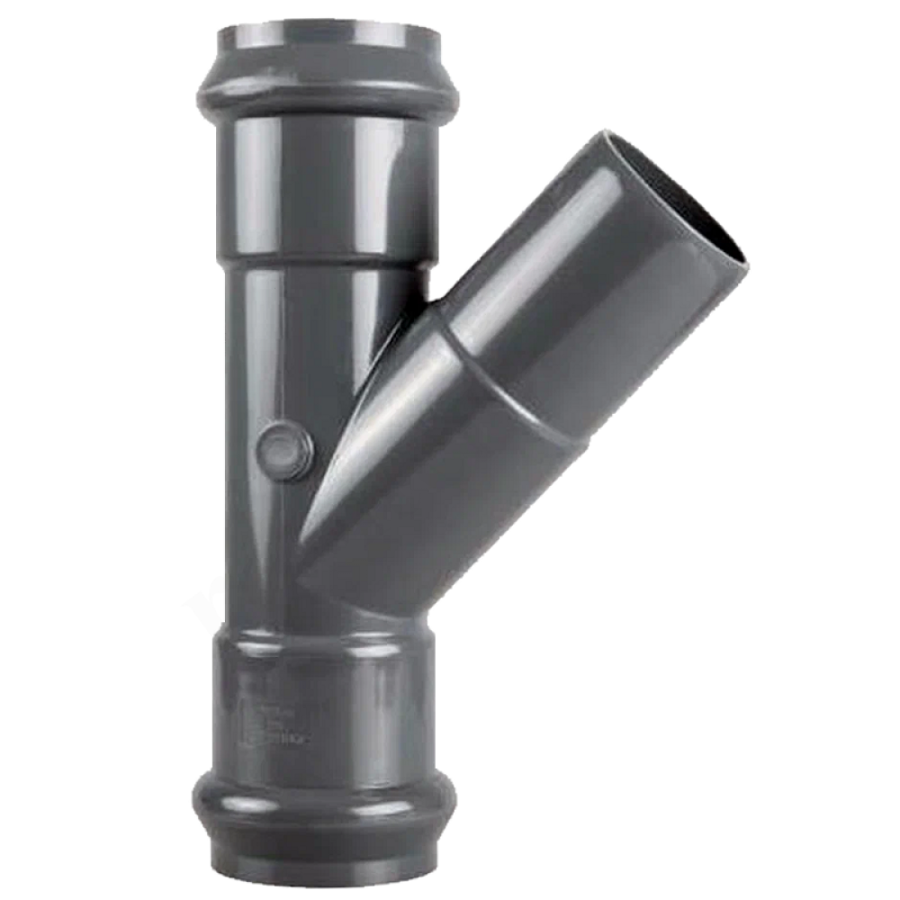 Тройник 45° 160-160-160, Хемкор SDR 26, раструб-труба, серый