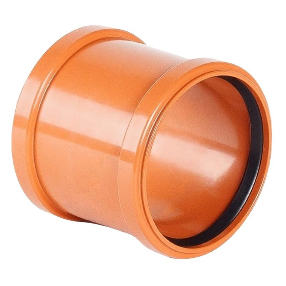Муфта надвижная ремонтная НПВХ - фасонная деталь с 2-мя отверстиями, которая используется для ремонтирования труб на трубопроводе, в том числе и в труднодоступных местах. Муфта НПВХ изготавливается из непластифицированного поливинилхлорида, имеет гладкую внутреннюю поверхность.