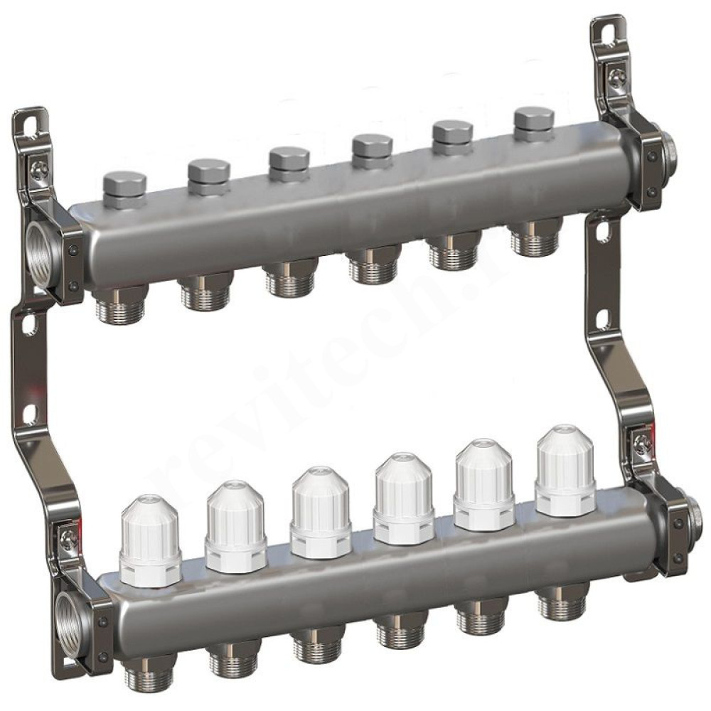 Коллектор RTP 1"х3/4", 6вых., c клапанами, сталь нерж., белый