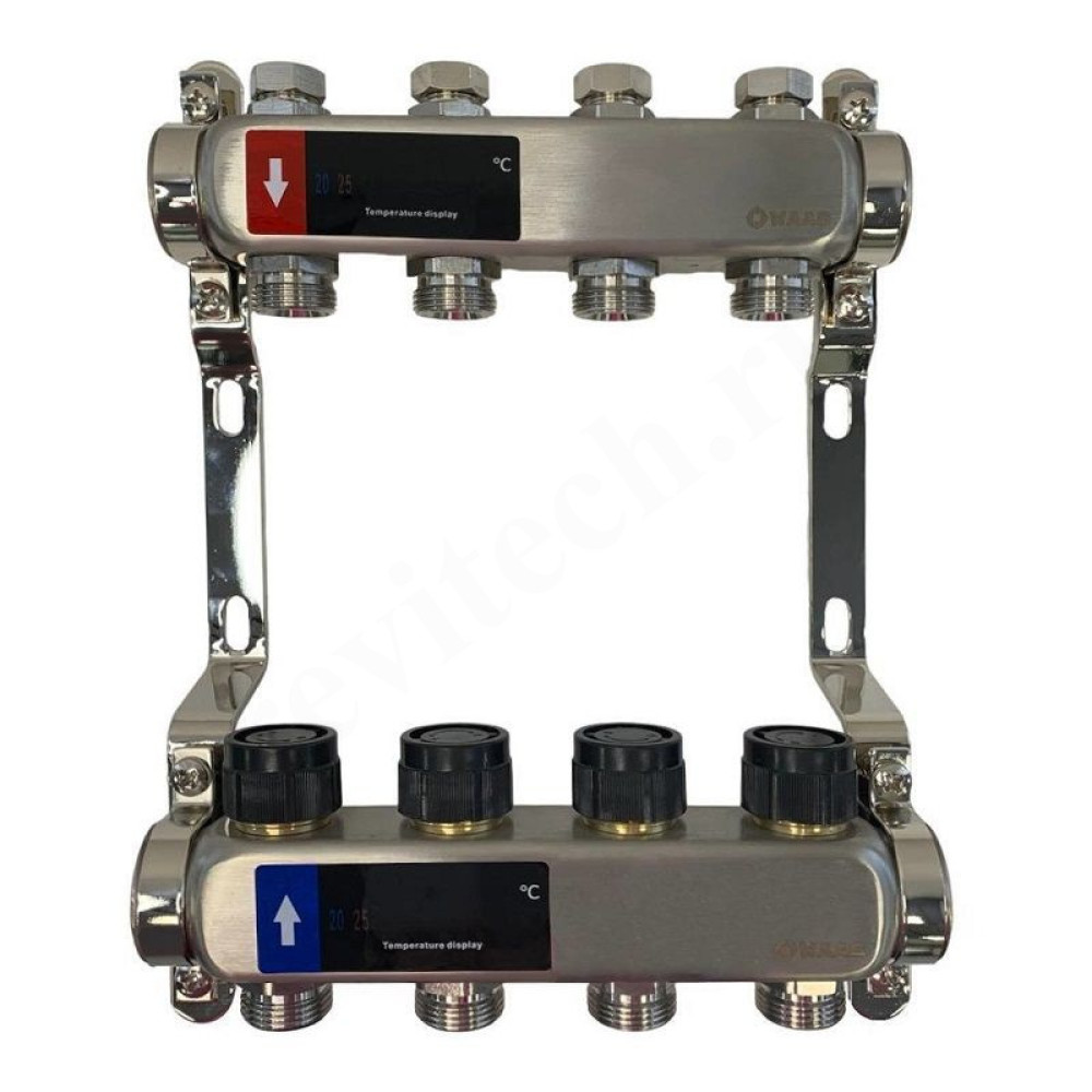 Коллектор WAAG 1"х3/4", 4вых., c клапанами, сталь нерж.