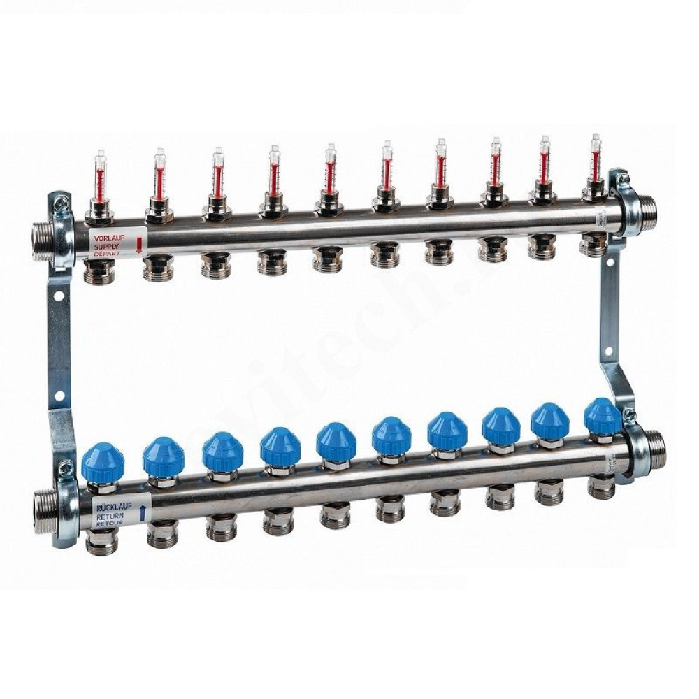 Коллектор Watts HKV 2013A-VA 1"х3/4", 10вых., c клапанами, с расходомерами, сталь нерж., (компл)