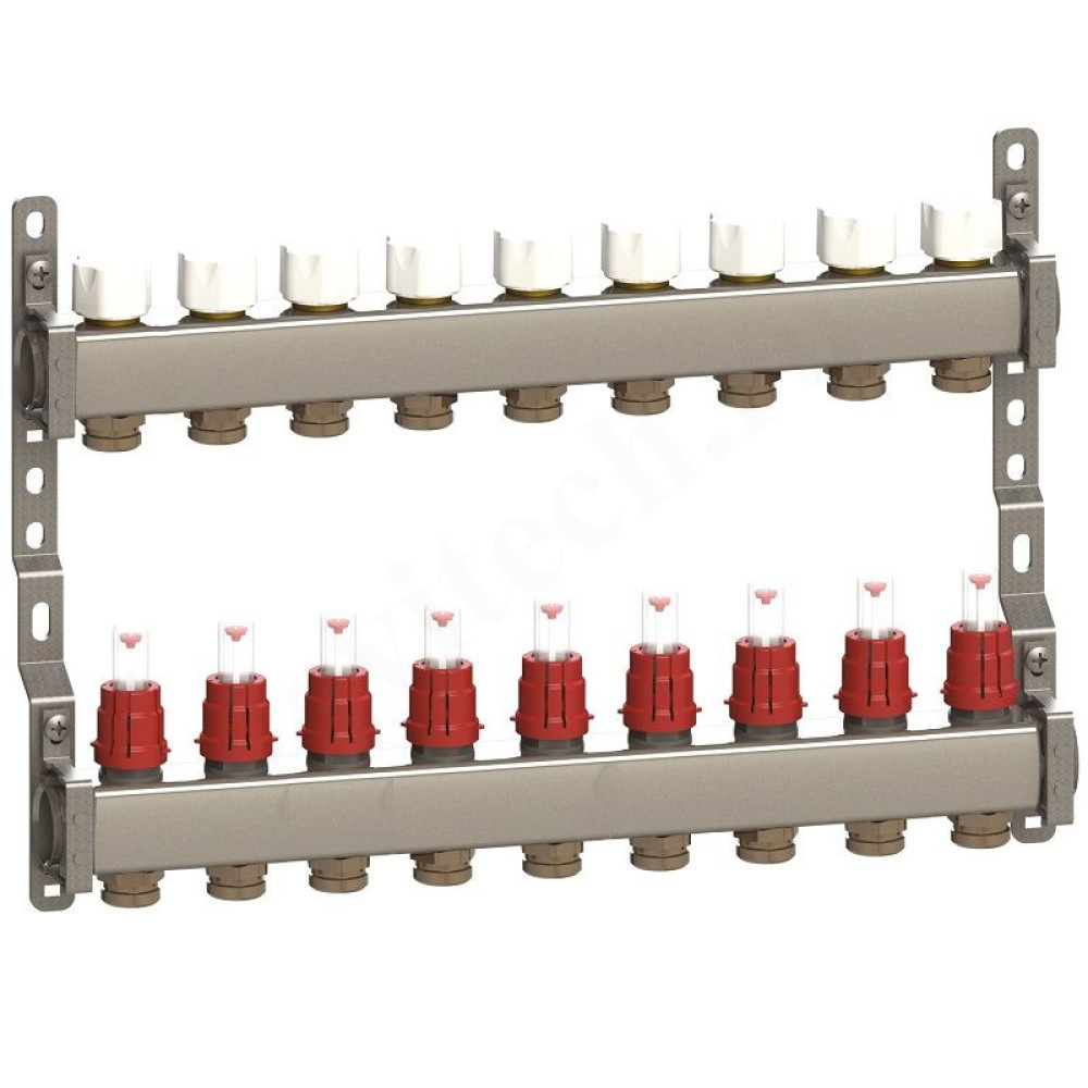 Коллектор General Fittings CX 1"х3/4", 9вых., c клапанами, с расходомерами, сталь нерж.