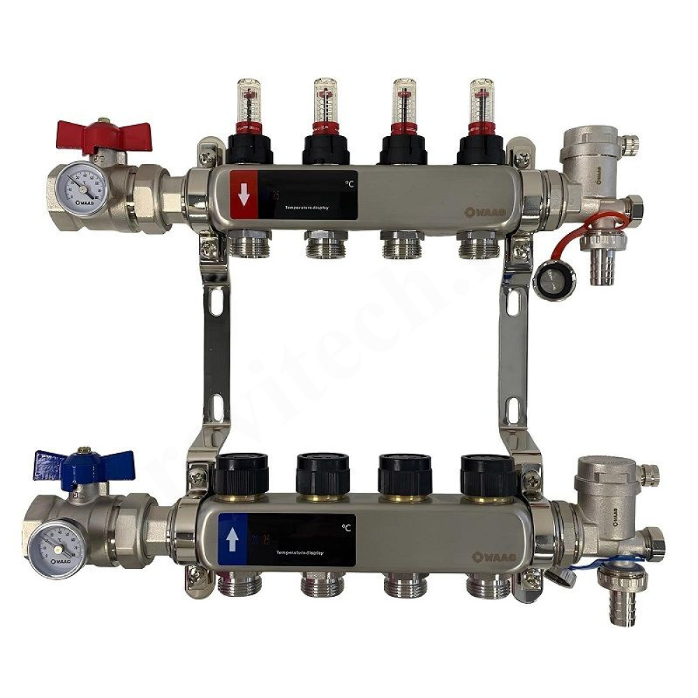 Коллектор WAAG 1"х3/4", 4вых., c клапанами, с расходомерами, сталь нерж., в сборе