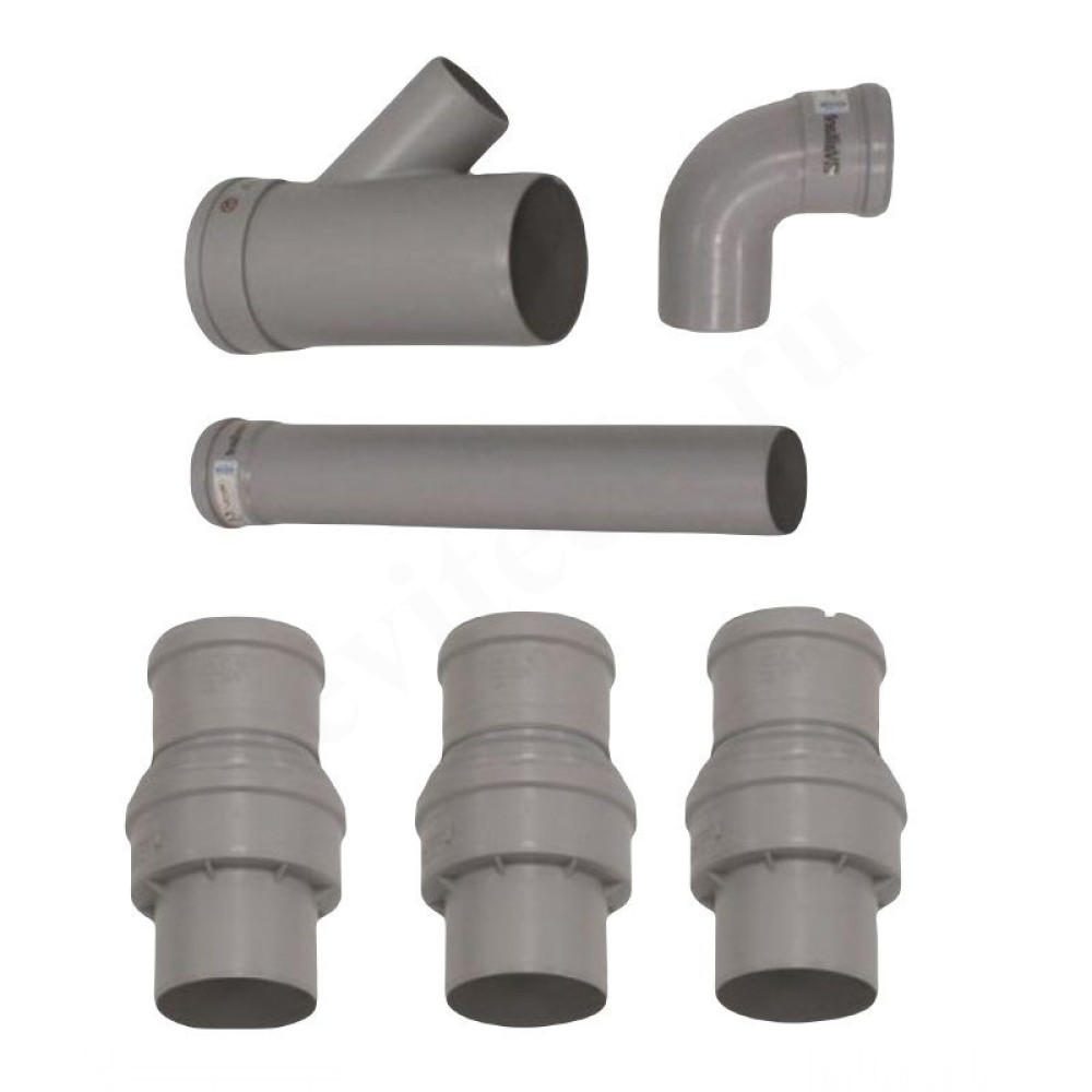 Дымоотводящий комплект 80, Vaillant, раструб-труба, полипропилен, для подключения 3-го аппарата к ка