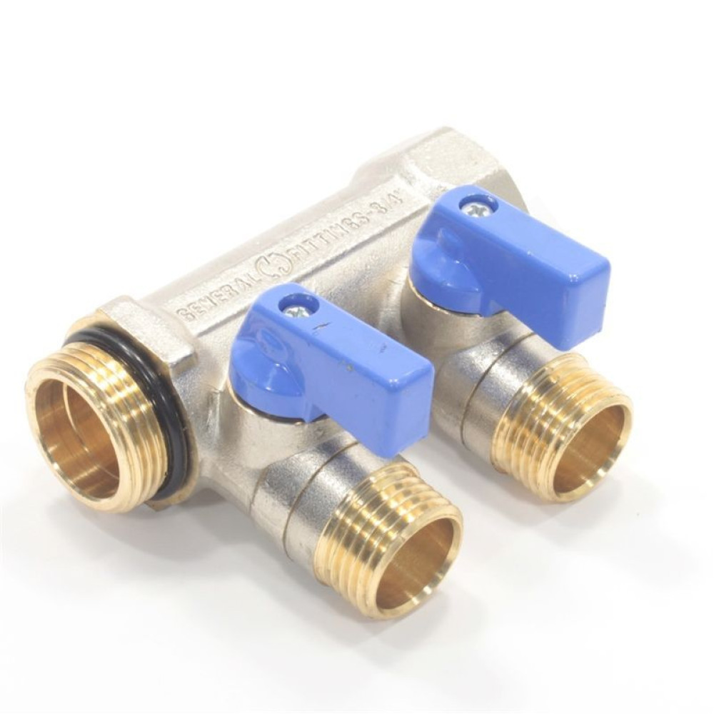 Коллектор General Fittings 6200 3/4"х1/2", 2вых., c шаровыми кранами, латунь никелир.