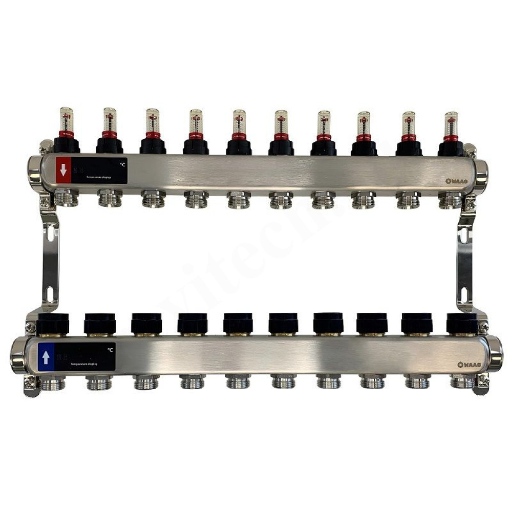 Коллектор WAAG 1"х3/4", 10вых., c клапанами, с расходомерами, сталь нерж.