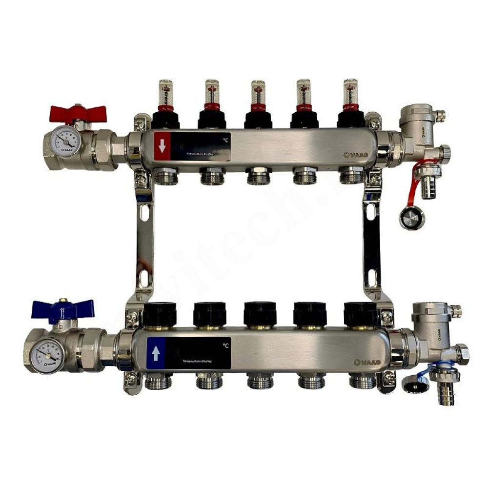• Комплект поставки коллектор, воздухоотводчик, кран шаровой с манометром, крепление, упаковка
