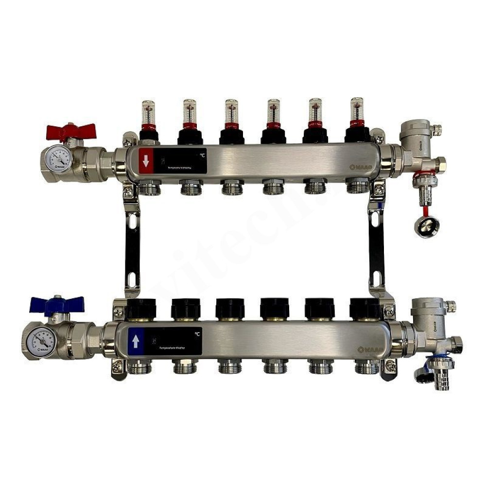 В комплекте: коллектор, воздухоотводчик, кран шаровой с манометром, крепление, упаковка
