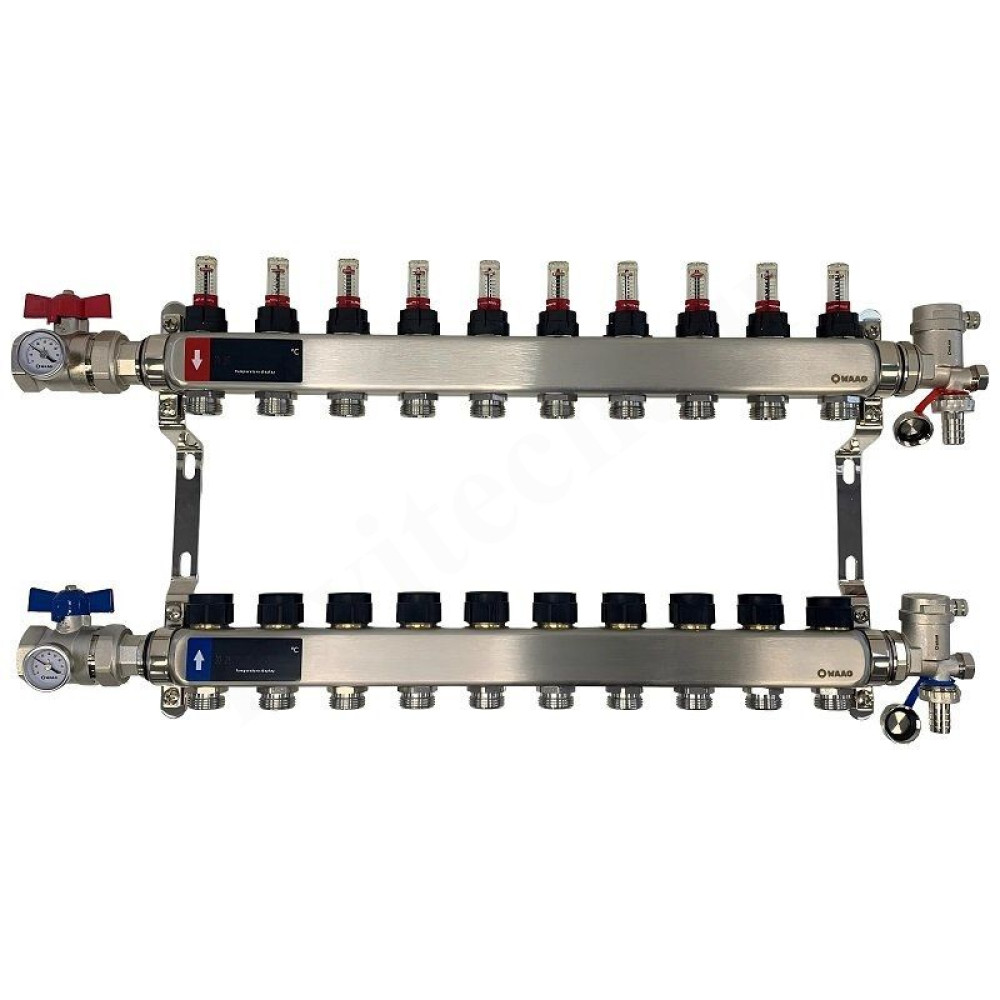 Коллектор WAAG 1"х3/4", 10вых., c клапанами, с расходомерами, сталь нерж., в сборе