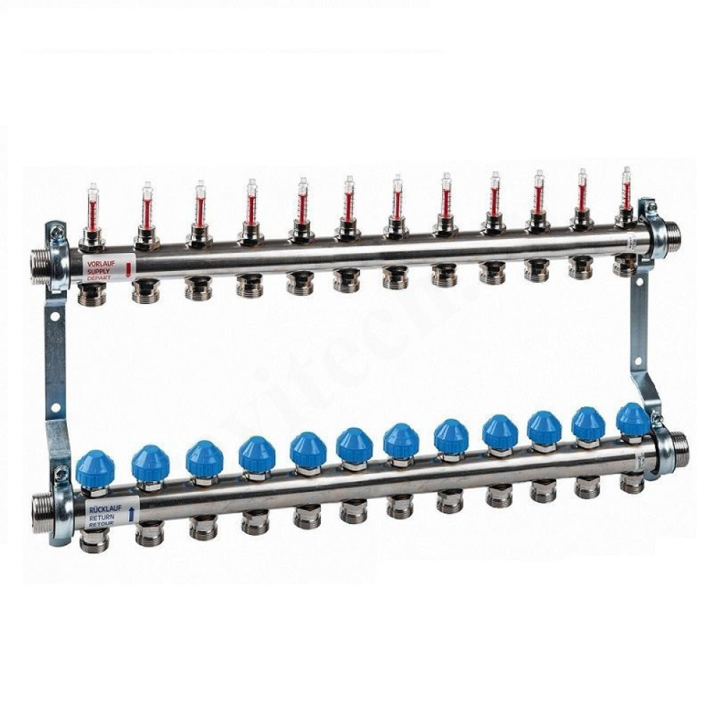 Коллектор Watts HKV 2013A-VA 1"х3/4", 12вых., c клапанами, с расходомерами, сталь нерж., (компл)