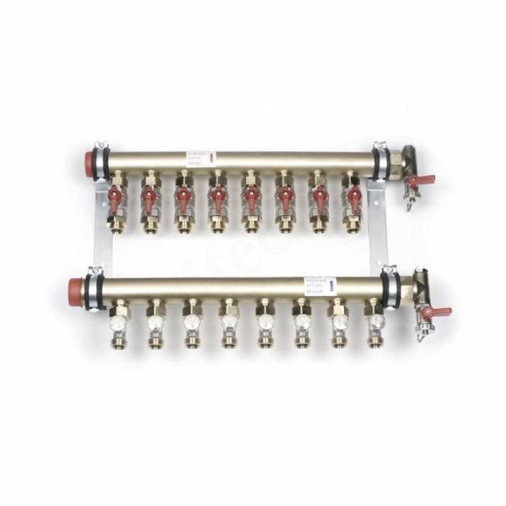 Коллектор Rehau IVKE 8 3/4"х3/4", 8вых., c шаровыми кранами, латунь, (компл), в сборе