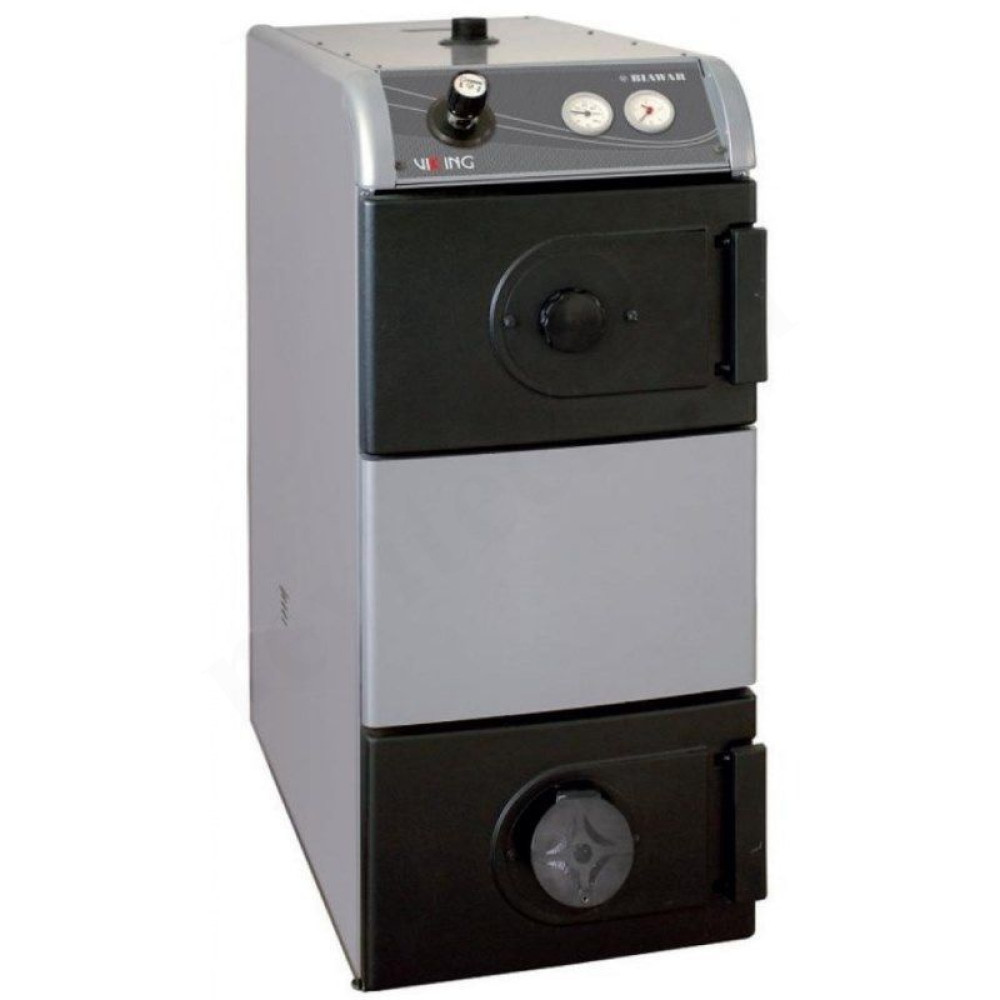 Твердотопливный котел VIKING 18 предназначен для отопления жилых зданий, мастерских, торговых павильонов и т.д. Котел VIKING 18 с ручной загрузкой топлива - это устройство с высоким энергетическим коэффициентом полезного действия (84%), отличающееся современным дизайном. Основным топливом для котла является каменный уголь. При необходимости можно применить топливо-заменитель (кокс, брикеты, дрова), без ущерба для высокого КПД. Примененная в котле VIKING 18 система нижнего сгорания гарантируют хорошую горючесть и лучший контроль над процессом сгорания, по сравнению с котлами с верхним сгоранием. VIKING 18 отличается большой камерой сжигания, а это обеспечивает пользователям комфорт большой одноразовой засыпки. Благодаря этому уменьшается частота загрузки топлива. Несомненное преимущество котла - это большая площадь приемки тепла и подвод вторичного воздуха для дожига остатков топлива. Применяемые решения значительно повышают КПД устройства.