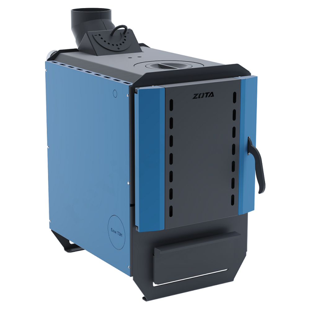 Твердотопливный котел ZOTA «Box-8» самый миниатюрный, малогабаритный. Работает на угле, дровах и электричестве. Рассчитан на отопление небольших помещений.