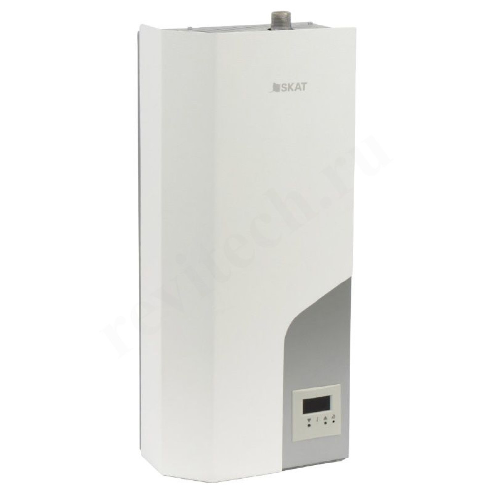 Одноконтурный электрокотёл с симисторным управлением револьверного типа SKAT SILVER STS - 12 (12 кВт) предназначен для обогрева жилых и производственных помещений в системах с принудительной циркуляцией теплоносителя.