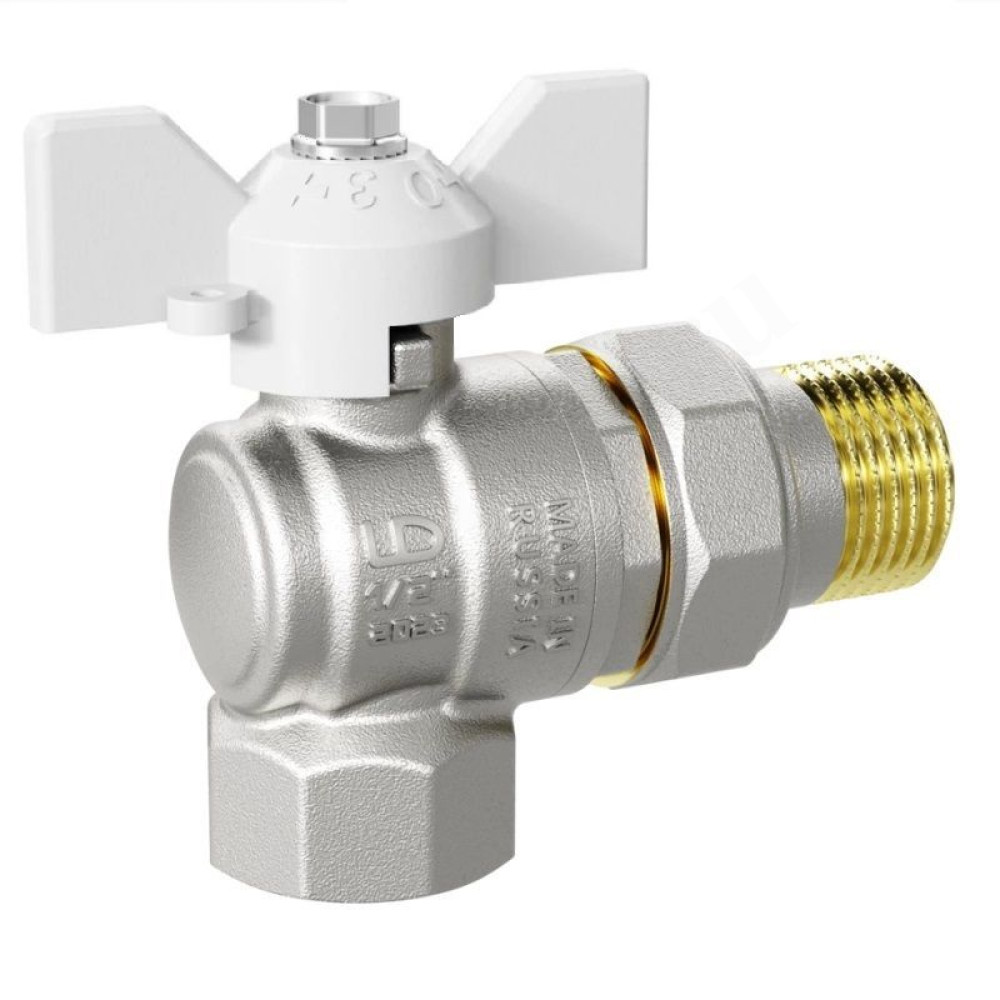 Кран шаровой резьб. 1/2", PN40, LD Pride, латунь Н/П, вн.р. - нар.р. с амер., с бабочкой, угловой