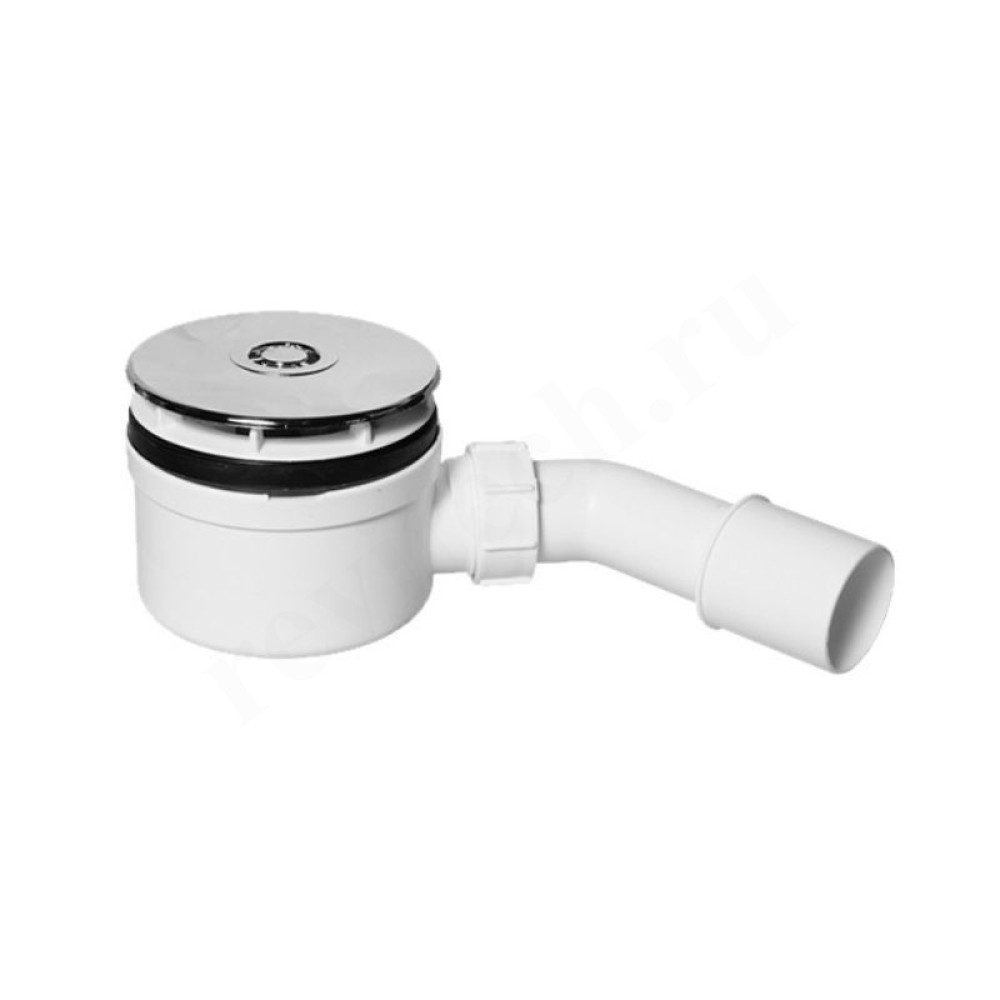 Сифон бутылочный для поддона (сливное отверстие 90-100мм) с 110мм пластиковыми выпуском и "грибком" (дизайн "Мерседес"); высота трапа 70мм; выход Дн=40/50мм; цвет-хром