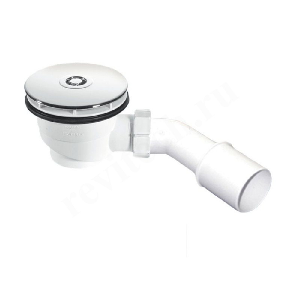 Сифон бутылочный для поддона (сливное отверстие 90-100мм) с 113мм пластиковыми выпуском и "грибком" (дизайн "Мерседес"); высота трапа 82мм; выход Дн=40/50мм; цвет-хром