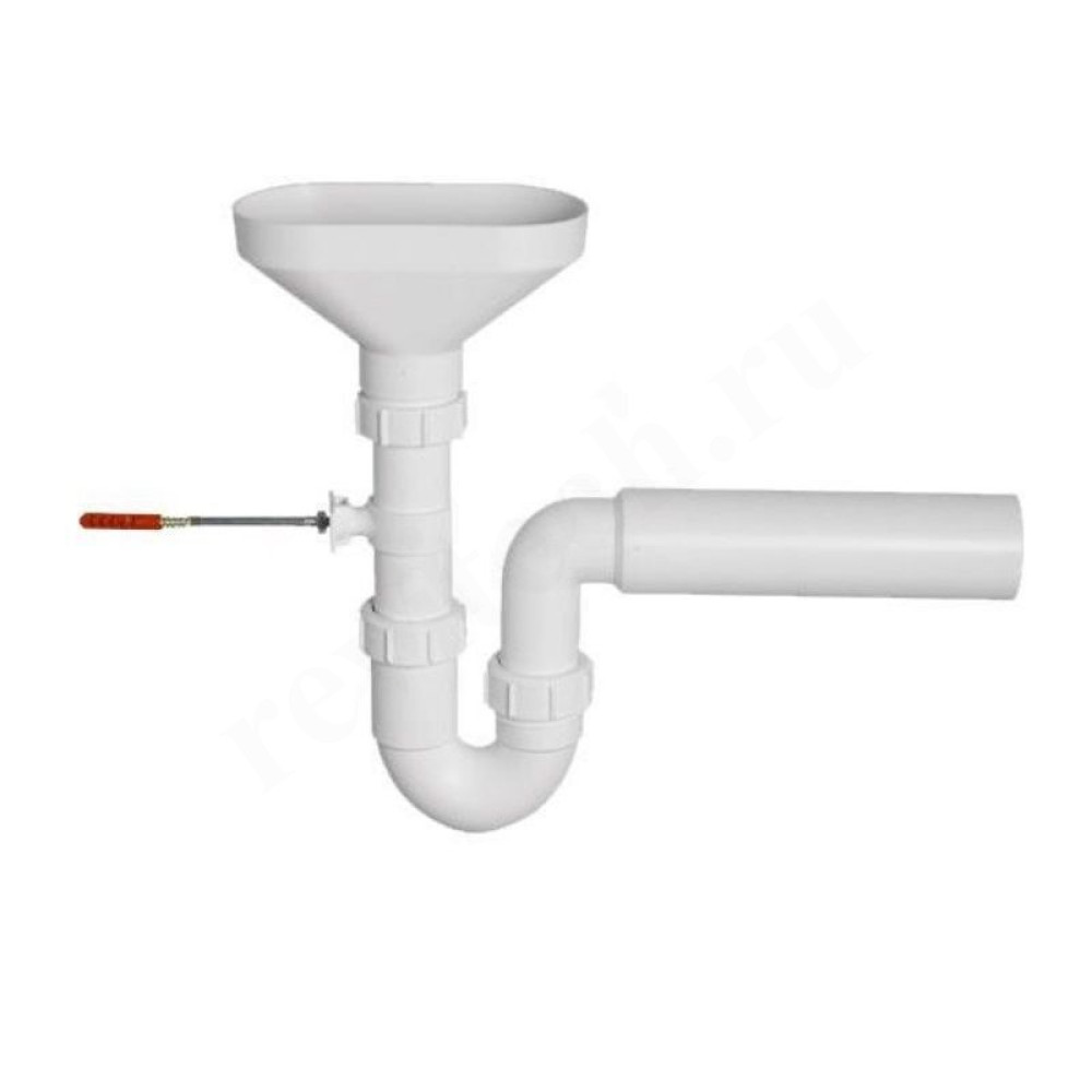 Сифон трубный Р-образный (1 1/2"х40мм) для разрыва потока/струи с овальной (170ммх85мм) приемной воронкой и горизонтальной отводной трубой D40/50мм; в комплекте крепеж к стене