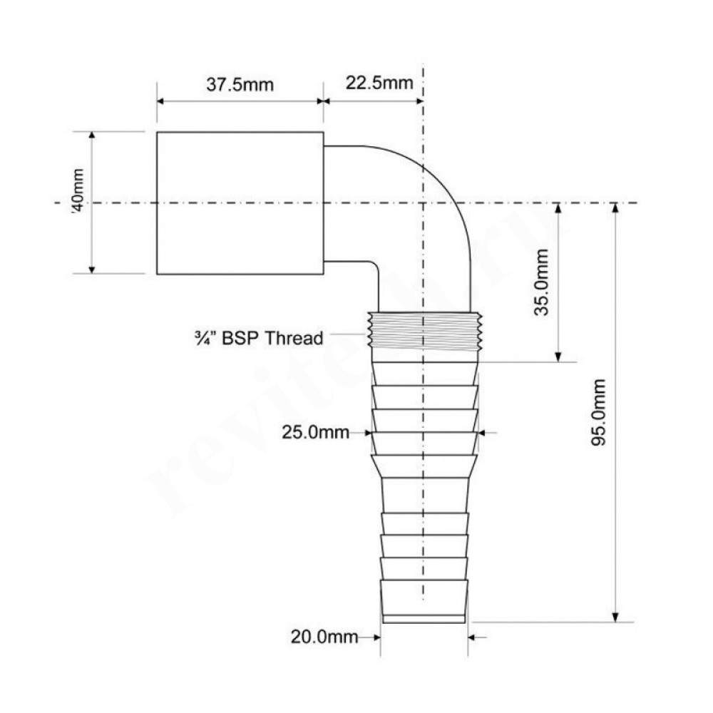 Отвод 90° 40-20, McAlpine, труба-штуцер, белый