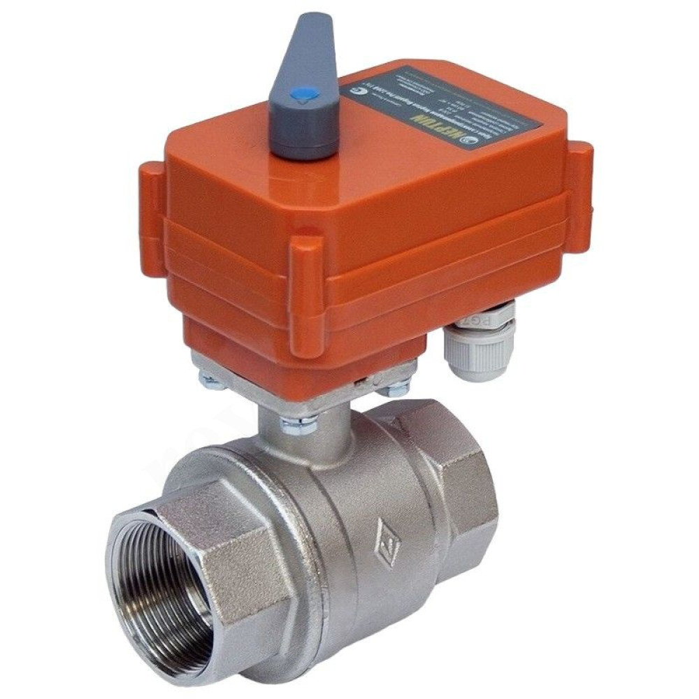 Кран шаровой резьб. 2" PN25, Neptun Bugatti Pro, латунь, вн.р.- вн.р., электропривод 220В