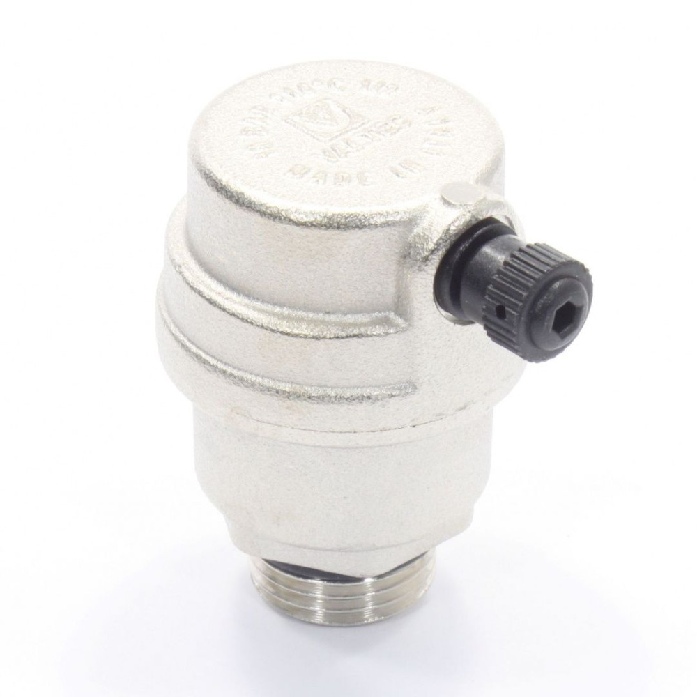 Автоматический воздухоотводчик поплавкового типа с пружинным золотником. Может использоваться на трубопроводах, транспортирующих воду, этилен- и пропиленгликолевый незамерзающий теплоноситель, другие жидкости, неагрессивные к материалам изделия. Ремонтопригодный. Детали корпуса воздухоотводчика выполнены из качественной сантехнической латуни, никелированы. Материал уплотняющей прокладки – эластомер EPDM, поплавка – полипропилен, пружины – нержавеющая сталь AISI 306, держателя золотника и жиклера – нейлон. Диаметр корпуса воздухоотводчика – 46 мм, присоединения – ½" (резьба – наружная). Данный воздухоотводчик рекомендуется устанавливать в закрытые системы отопления, где потребителем производится водоподготовка (предусмотрены системы фильтрации). Сфера применения: коллекторные группы и распределительные узлы, группы безопасности котла, коллекторы теплого пола и т.д., гидроразделители (гидрострелки).