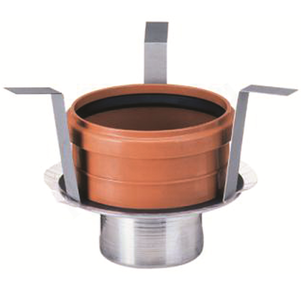 Противопожарная муфта R90 для серии HL317, состоящая из металлического корпуса с расширяющимся материалом и бугелем, строительной защитой во время монтажа. Применять только с соединением DN50 или DN75.